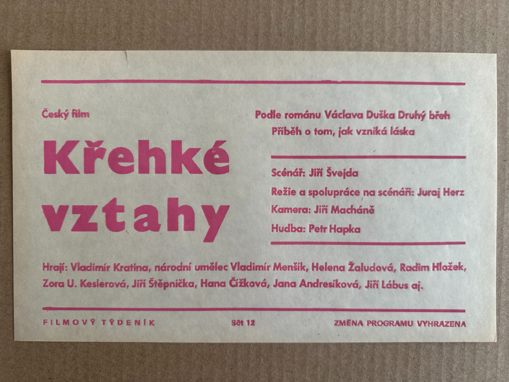 Křehké vztahy - Filmový plakát / Fotoska / Slepka (cca A4)