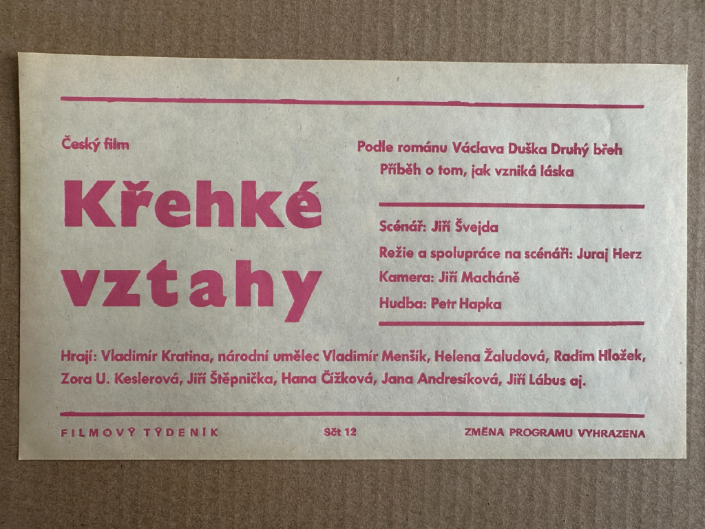Křehké vztahy - Filmový plakát / Fotoska / Slepka (cca A4)